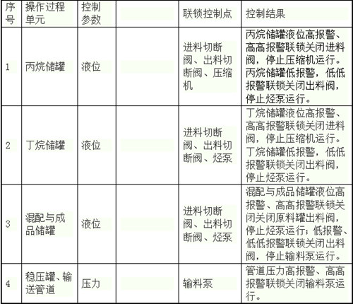 根據(jù)國家安全生產(chǎn)監(jiān)督管理總局發(fā)布的中華人民共和國安全生產(chǎn)行業(yè)標(biāo)準(zhǔn)《危險(xiǎn)化學(xué)品重大危險(xiǎn)源安全監(jiān)控通用技術(shù)規(guī)范》AQ3035-2010和《危險(xiǎn)化學(xué)品重大危險(xiǎn)源罐區(qū)現(xiàn)場安全監(jiān)控裝備設(shè)置規(guī)范》AQ3036-2010的要求,本設(shè)計(jì)對成品儲罐和原料儲罐壓力進(jìn)行顯示、記錄和超限報(bào)警,對成品儲罐和原料儲罐液位進(jìn)行顯示、記錄、超限報(bào)警和連鎖,對過濾器組進(jìn)出口壓力、混料泵出口壓力、卸車進(jìn)出口壓力、輸送緩沖罐、輸送泵壓力進(jìn)行顯示、記錄和超限報(bào)警,對氣霧劑輸送管道壓力進(jìn)行顯示、記錄、超限報(bào)警和連鎖。
