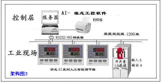 在系統(tǒng)中由于AI系列儀表的出色性能,宇電又開發(fā)出基于AI儀表并具備現(xiàn)場總線特性的AIFCSV9.0計算機監(jiān)控系統(tǒng)。AI儀表相當于現(xiàn)場總線系統(tǒng)中的各個控制單元,利用RS485作為現(xiàn)場通訊總線,采用宇電自行開發(fā)的AIBUS通訊協(xié)議,可在上位機上實現(xiàn)100%儀表功能操作如實時讀取測量值、給定值、設(shè)置參數(shù)、自動/手動無擾動切換、調(diào)整手動輸出值、啟動/運行/停止程序,并具備開關(guān)量輸入/輸出操作能力。開放式結(jié)構(gòu)隨意添加控制儀表。