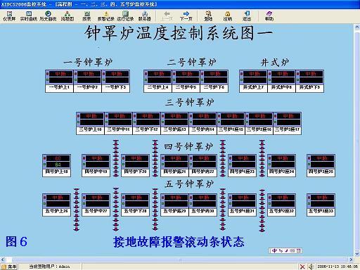 當罩式爐產(chǎn)生接地故障,接地故障報警滾動條狀態(tài)在流程圖上顯示接地狀態(tài)。
