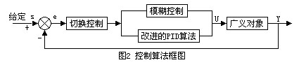 工業(yè)過程中常用的PID控制器適用于線性定常系統(tǒng),而供水系統(tǒng)的對象時常含有非線性、時變環(huán)節(jié),而且有些參數(shù)未知式緩慢變化,因此單獨采用PID控制較難達(dá)到理想的控制效果,AI人工智能調(diào)節(jié)器采用模糊控制和改進(jìn)PID相結(jié)合的雙??刂扑惴ǎ雸D2所示