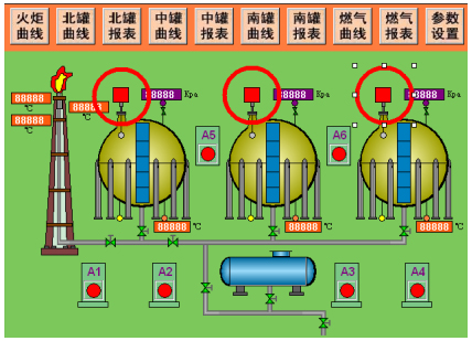 某油田貯藏罐使用一臺(tái)AI-301M輸入模塊和觸摸屏電腦CE系統(tǒng)采集貯藏罐高高液位報(bào)警的開(kāi)關(guān)量在監(jiān)控軟件上顯示。