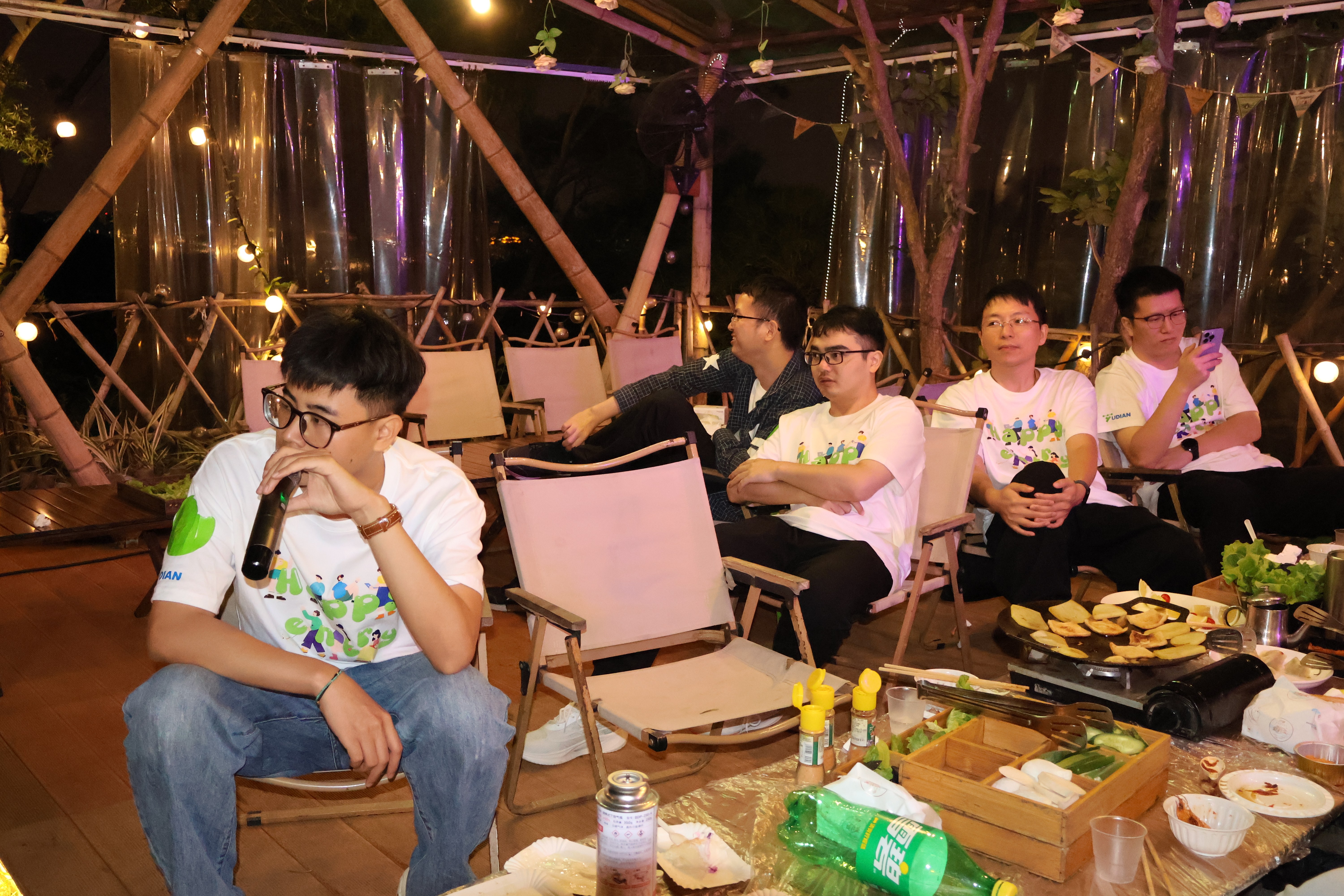 當(dāng)夜幕降臨,星光點(diǎn)點(diǎn),最令人期待的露營(yíng)燒烤晚會(huì)正式開(kāi)始。大家自己動(dòng)手,分工協(xié)作,炊煙裊裊中彌漫著食物的香氣與歡聲笑語(yǔ)。新同事們舉杯暢飲,分享著入職以來(lái)的心得與感悟,也對(duì)在宇電的未來(lái)充滿了無(wú)限的憧憬。